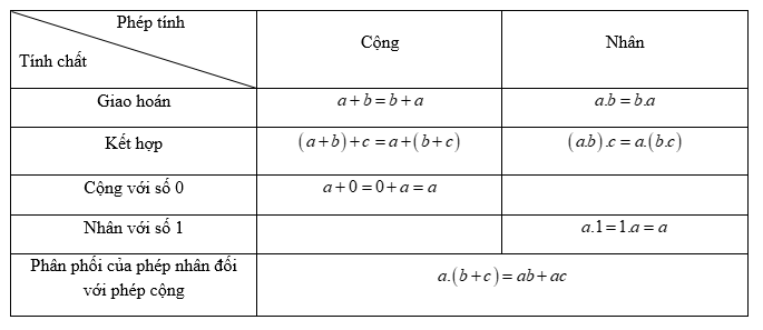 Tính chất của phép cộng và phép nhân số tự nhiên