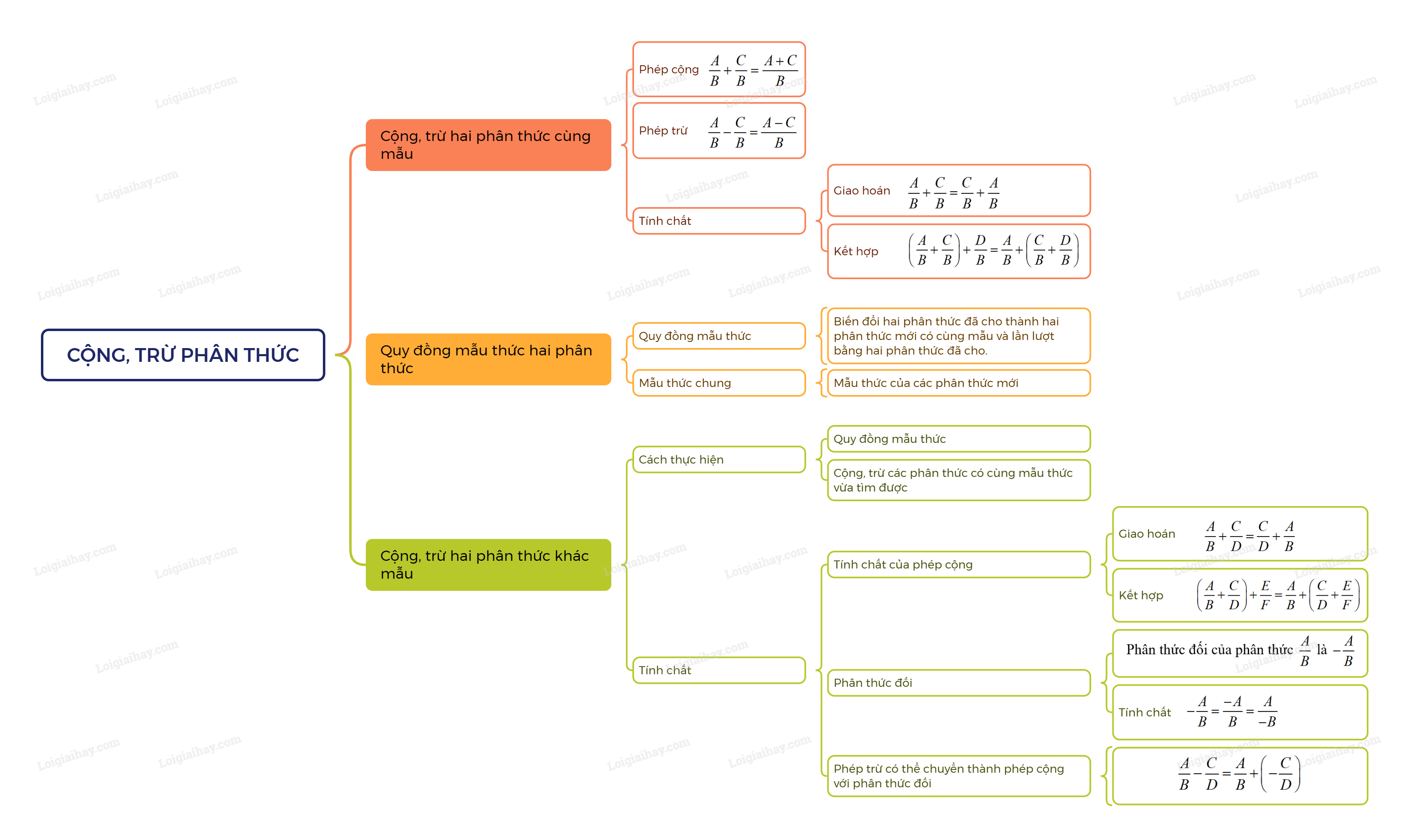 – Cộng, trừ các phân thức có cùng mẫu thức vừa tìm được.