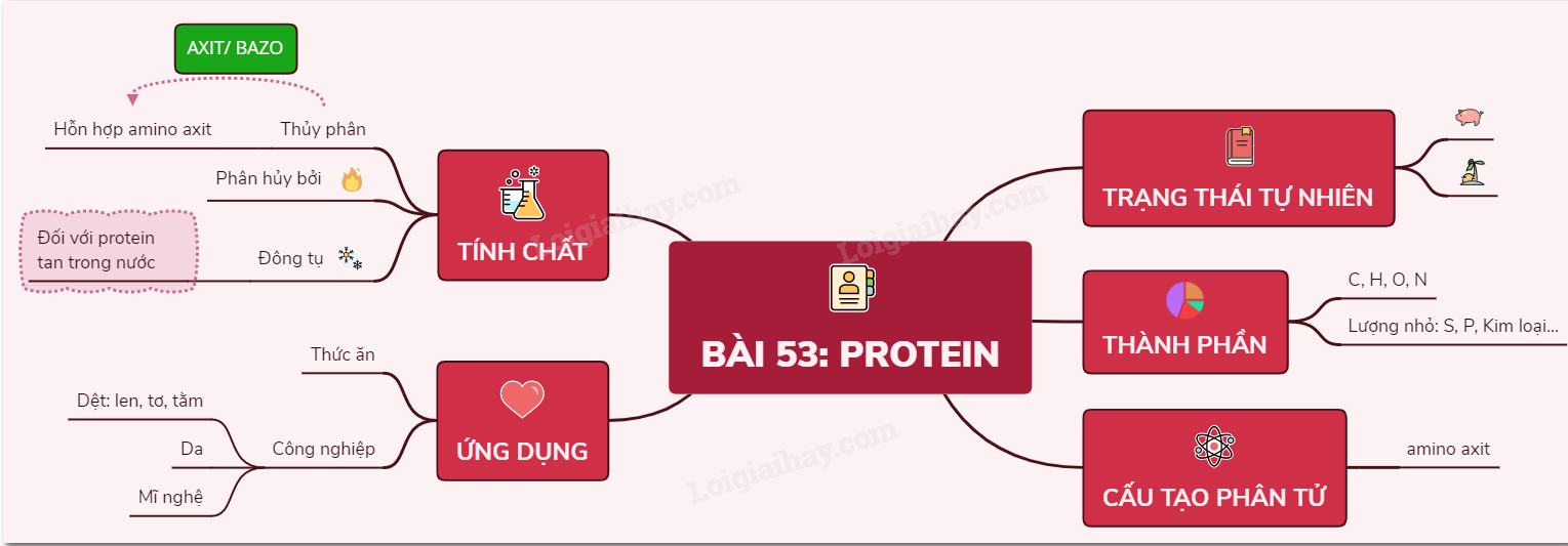 – Thành phần nguyên tố chủ yếu của protein là C, H, O, N và một lượng nhỏ S, P, kim loại.