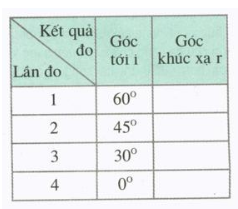 Vẽ đường truyền của tia sáng trong các trường hợp, đo các góc khúc xạ tương ứng: