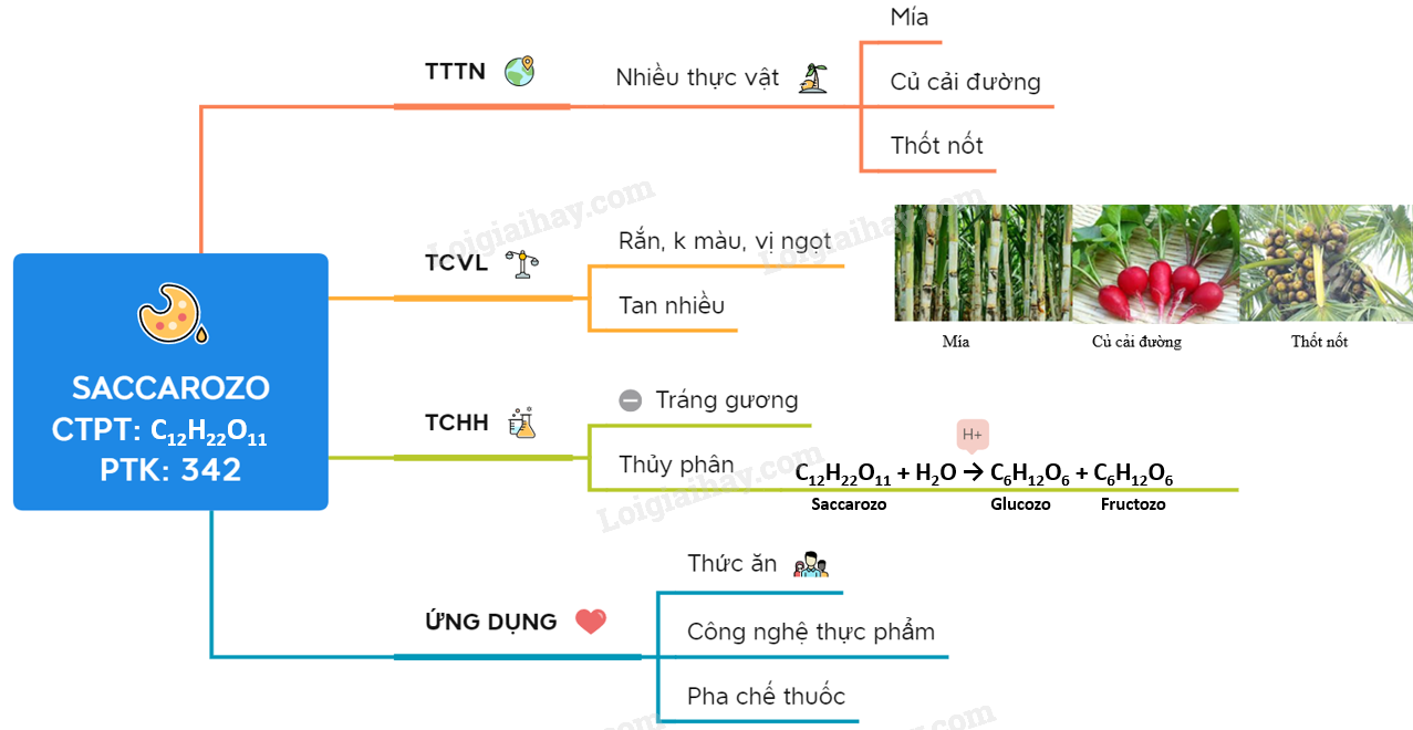 Saccarozơ C12H22O11 là chất rắn kết tinh không màu, vị ngọt, tan nhiều trong nước, nhất là nước nóng.