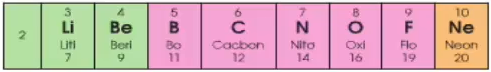 + Đẩu chu kỳ 2 là một kim loại mạnh (Li), cuối chu kỳ là một phi kim mạnh (F), kết thúc chu kỳ là một khí hiếm (Ne).