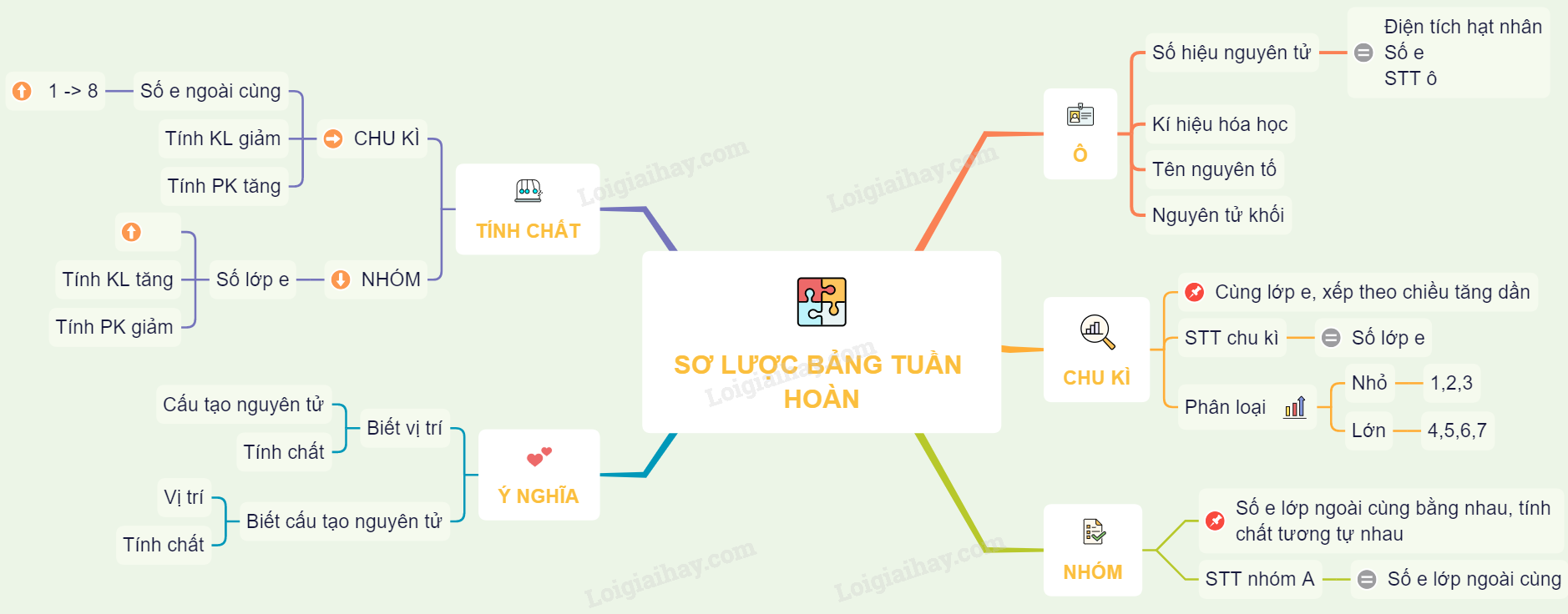 Sơ đồ tư duy: Sơ lược về bảng tuần hoàn các nguyên tố hoá học
