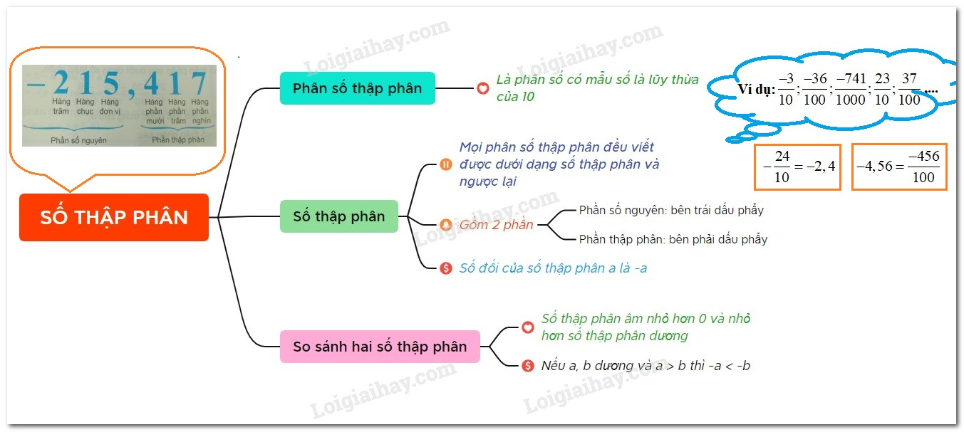 – Số thập phân âm nhỏ hơn $0$ và nhỏ hơn số thập phân dương