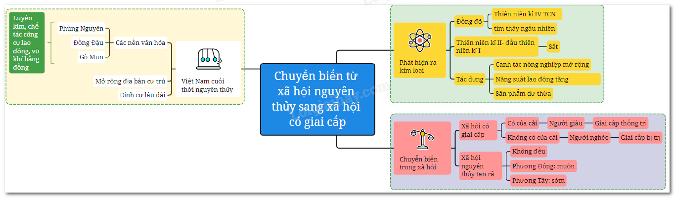 Sơ đồ tư duy chuyển biến về kinh tế-xã hội cuối thời nguyên thủy