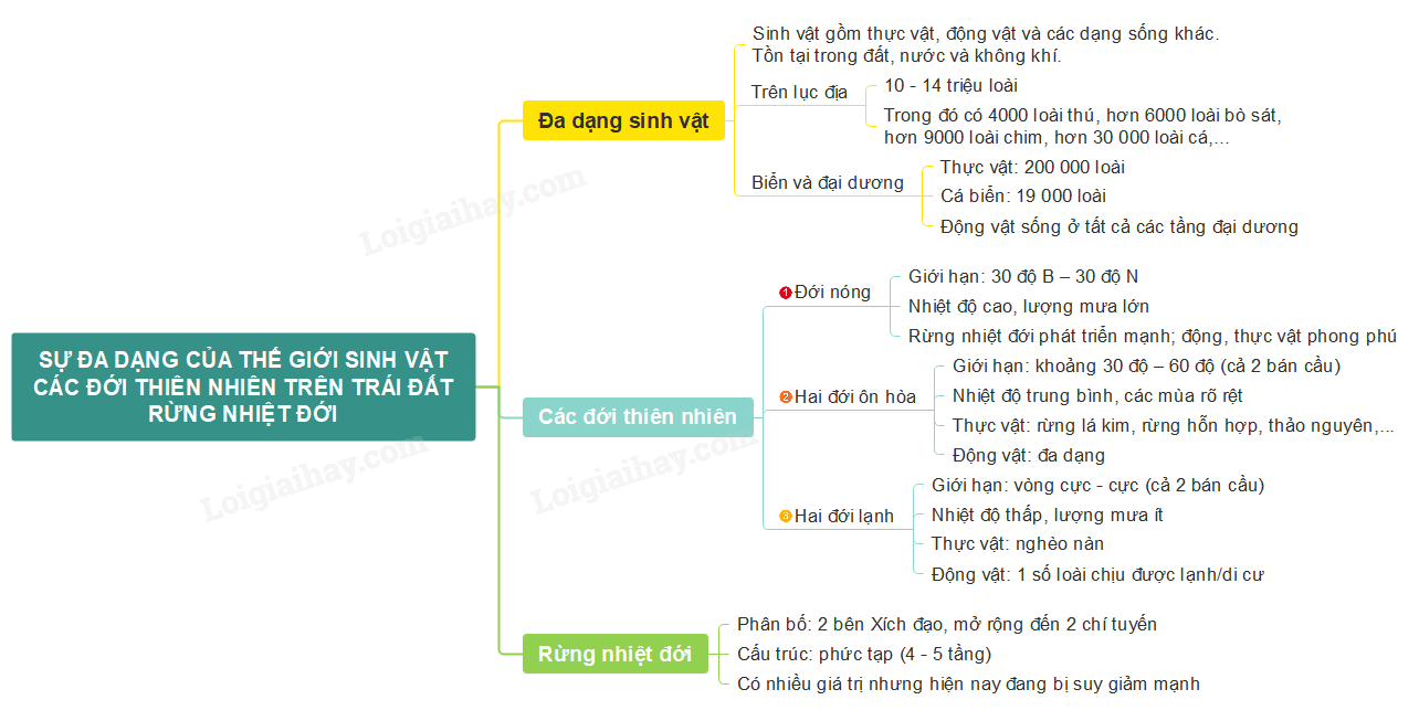 Sơ đồ tư duy sự đa dạng của thế giới sinh vật. Các đới thiên nhiên trên Trái Đất. Rừng nhiệt đới