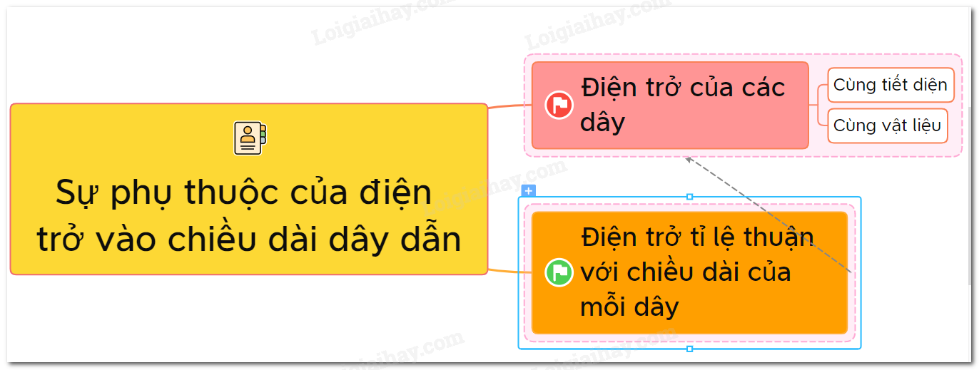 Sơ đồ tư duy về sự phụ thuộc của điện trở vào chiều dài dây dẫn – Vật lí 9