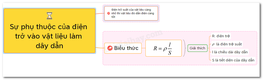 Sơ đồ tư duy về sự phụ thuộc của điện trở vào vật liệu làm dây dẫn – Vật lí 9