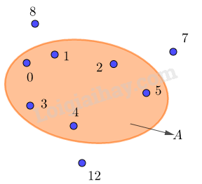 Tập hợp A trên hình vẽ \(A = \left\{ {0;1;2;3;4;5} \right\}\). Các số 1,2,3,4,5 được viết trong dấu { } và bị ngăn cách nhau bởi dấu “;”.