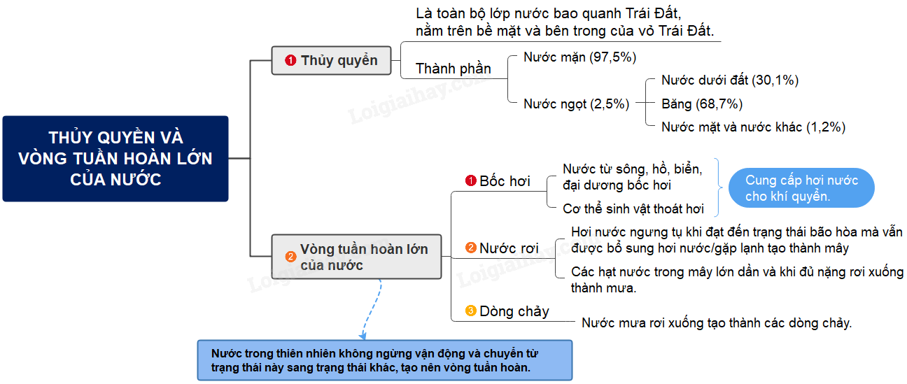 Sơ đồ tư duy thủy quyển và vòng tuần hoàn lớn của nước