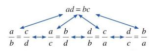 \(\frac{a}{b} = \frac{c}{d};\frac{a}{c} = \frac{b}{d};\frac{d}{b} = \frac{c}{a};\frac{d}{c} = \frac{b}{a}\)
