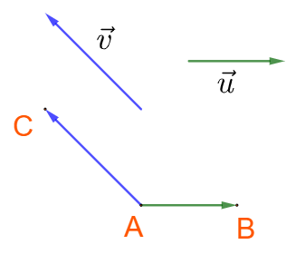 +) \(\left( {\;\overrightarrow u ,\overrightarrow v } \right) = {180^ \circ } \Leftrightarrow \overrightarrow u ,\overrightarrow v \) ngược hướng