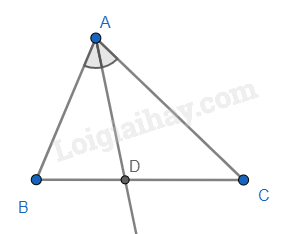 Chú ý: Trong tam giác ABC, nếu D là điểm thuộc đoạn thẳng BC và thỏa mãn \(\frac{{DB}}{{DC}} = \frac{{AB}}{{AC}}\) thì AD là đường phân giác của góc A