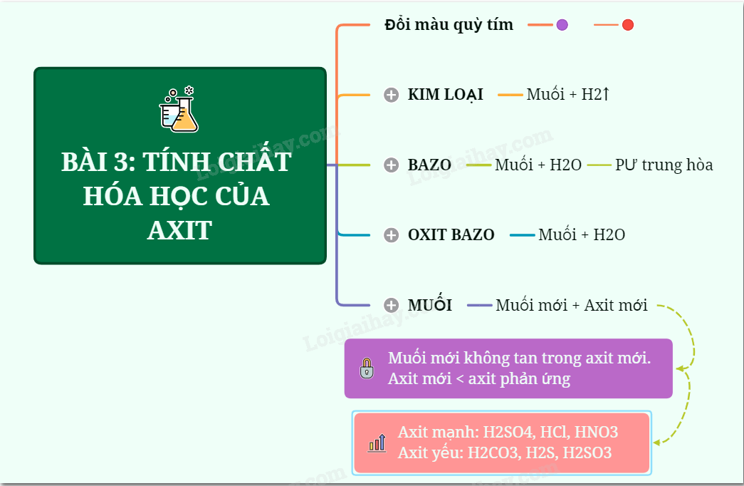 Sơ đồ tư duy: Tính chất hóa học của axit.