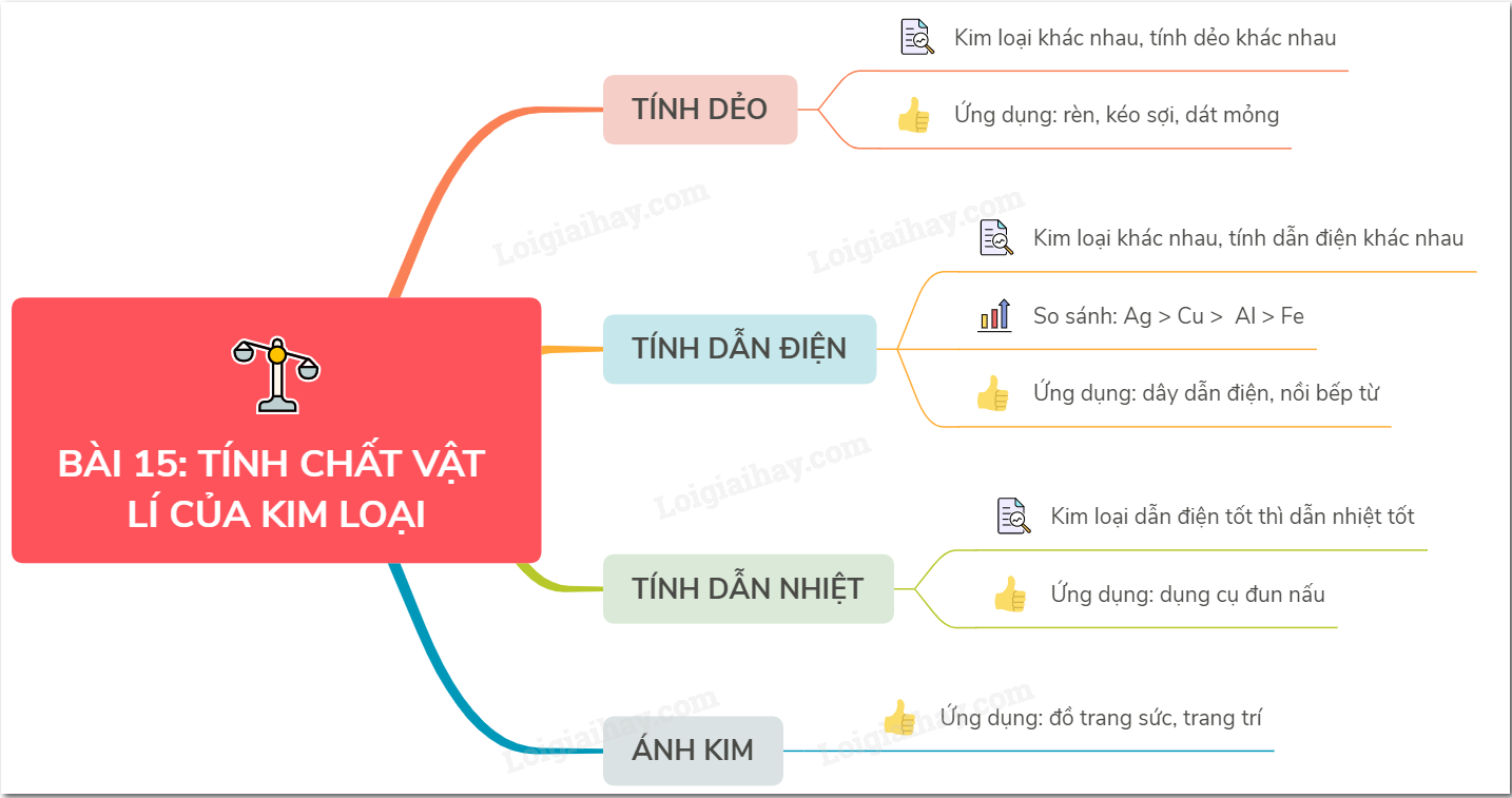 Sơ đồ tư duy: Tính chất vật lí của kim loại