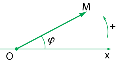 + hợp với trục Ox một góc bằng pha ban đầu \(\varphi\) (chọn chiều dương là chiều dương của vòng tròn lượng giác).
