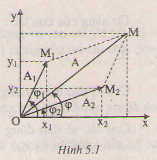 2. Phương pháp giản đồ Fre-nen: Lần lượt vẽ hai vec tơ quay biểu diễn hai phương trình dao động thành phần. Vectơ tổng của hai vectơ thành phàn biểu diễn phương trình của dao động tổng hợp (Hình 5.1).