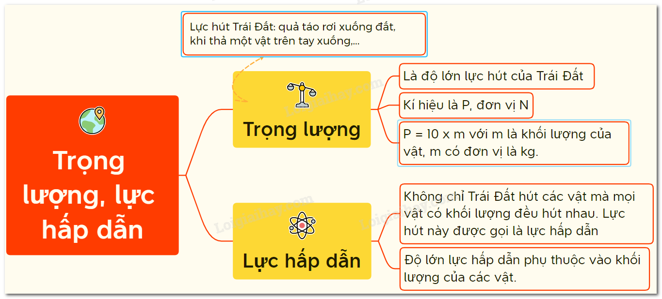Sơ đồ tư duy về trọng lượng. Lực hấp dẫn – KHTN 6 – Kết nối tri thức với cuộc sống
