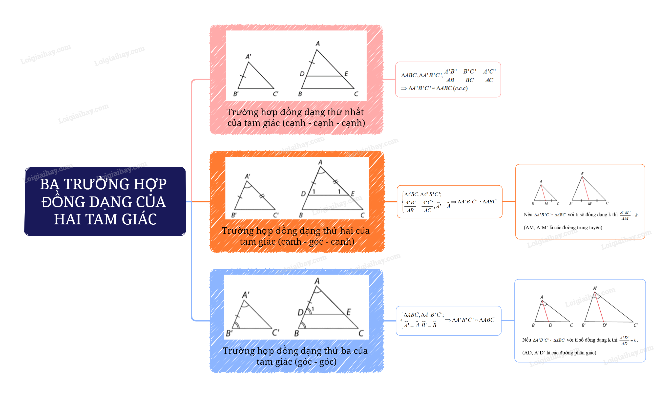 Nếu hai góc của tam giác này lần lượt bằng hai góc của tam giác kia thì hai tam giác đó đồng dạng với nhau.