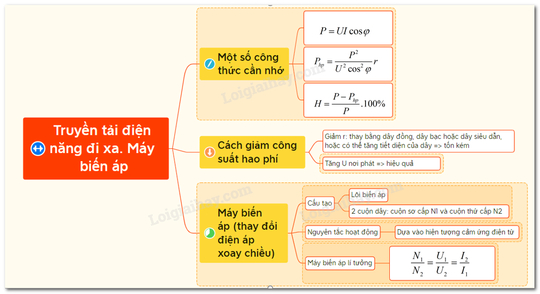 Sơ đồ tư duy về truyền tải điện năng. Máy biến áp – Vật lí 12