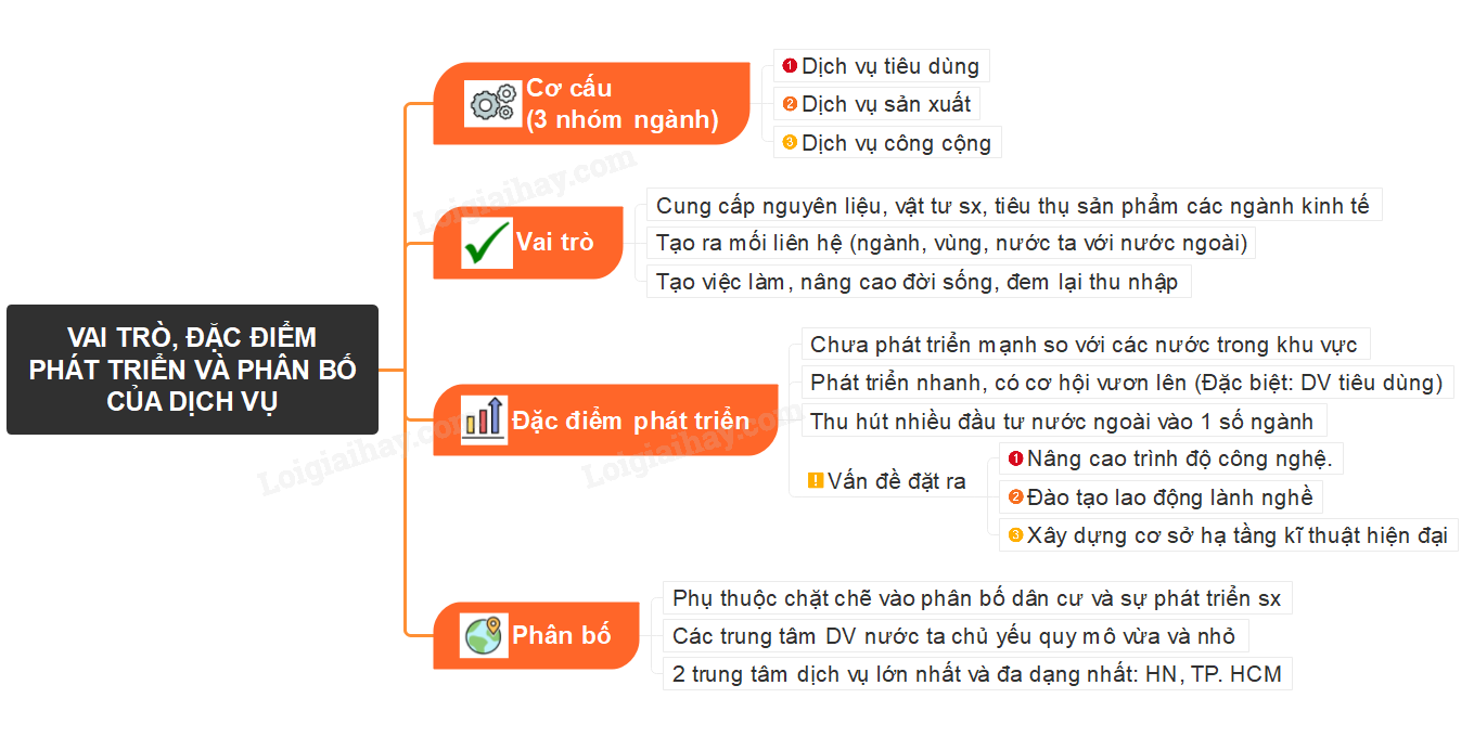 Lý thuyết vai trò, đặc điểm phát triển và phân bố của dịch vụ Địa lí 9