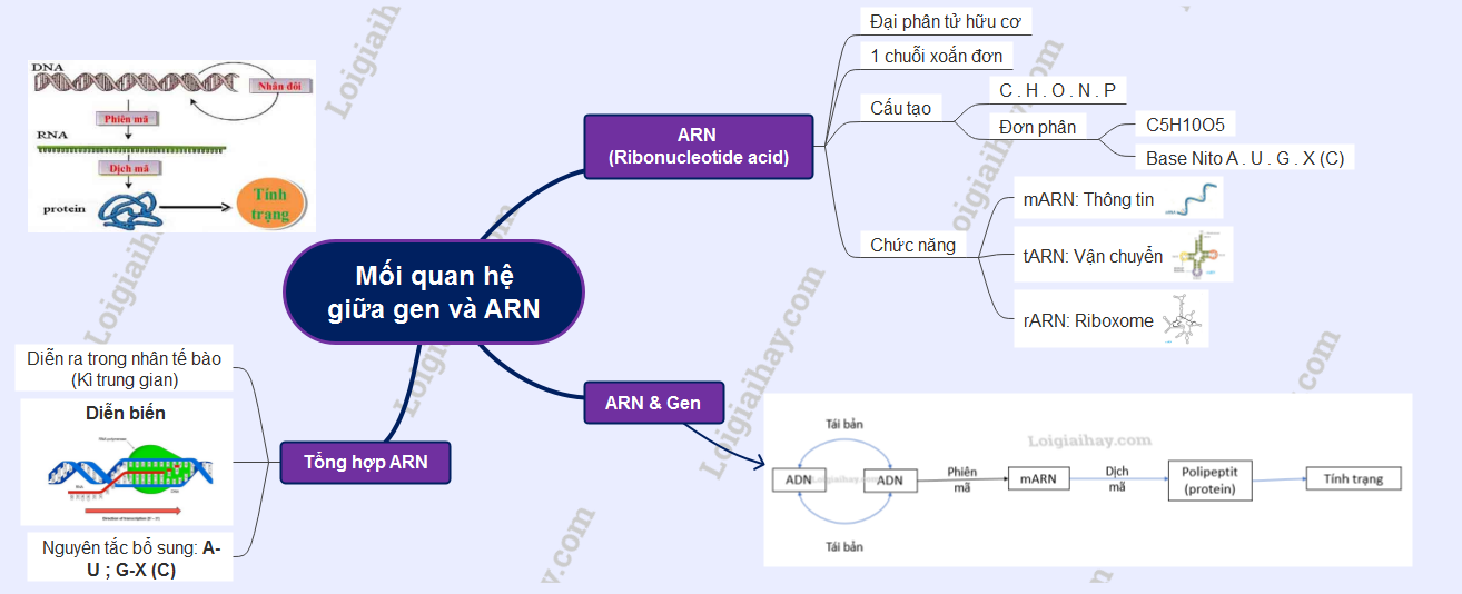 Sơ đồ tư duy Mối quan hệ giữa gen và ARn:
