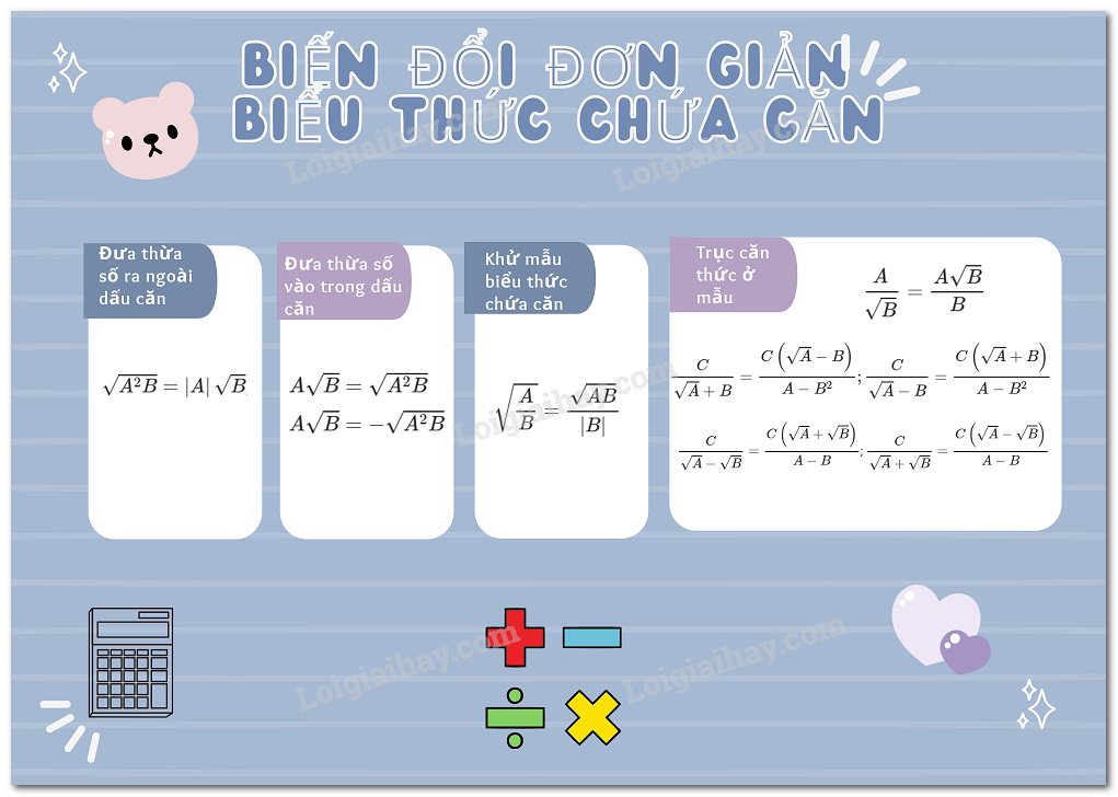 +) $A\sqrt B  = \sqrt {{A^2}B} $ với $A \ge 0$ và $B \ge 0$