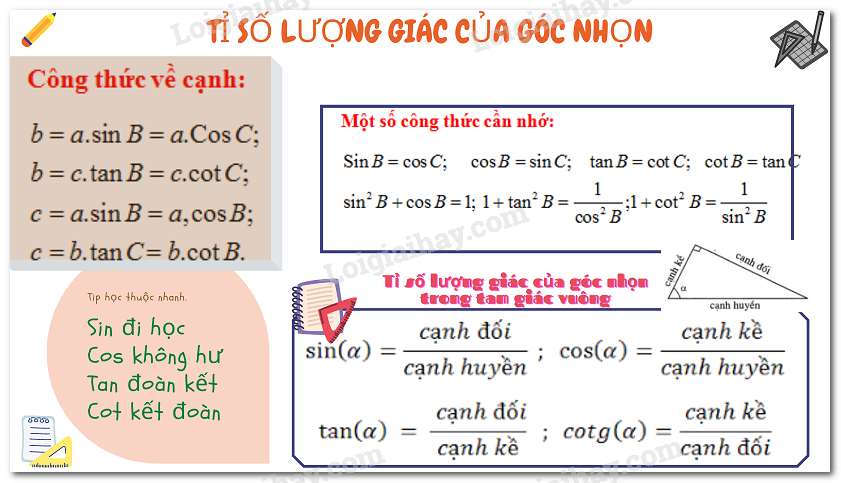Lý thuyết về một số hệ thức về cạnh và góc trong tam giác vuông