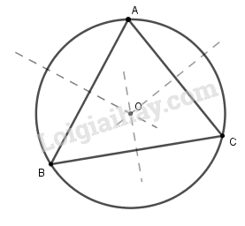Tâm O của đường tròn đi qua ba điểm A, B, C là giao điểm của ba đường trung trực của tam giác ABC.