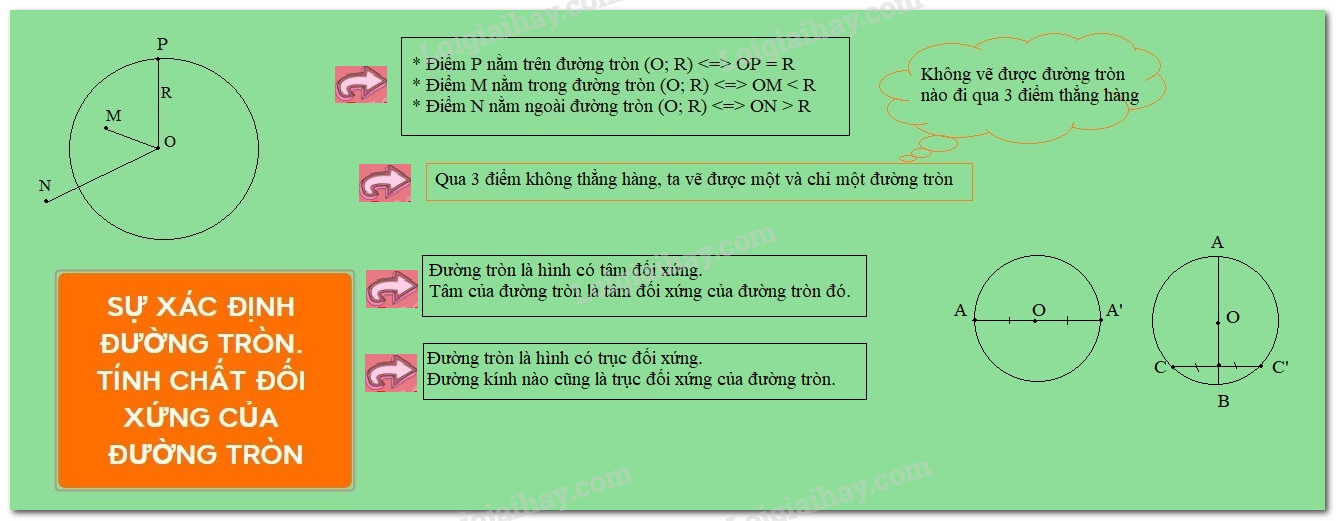 Lý thuyết về sự xác định đường tròn. Tính chất đối xứng của đường tròn