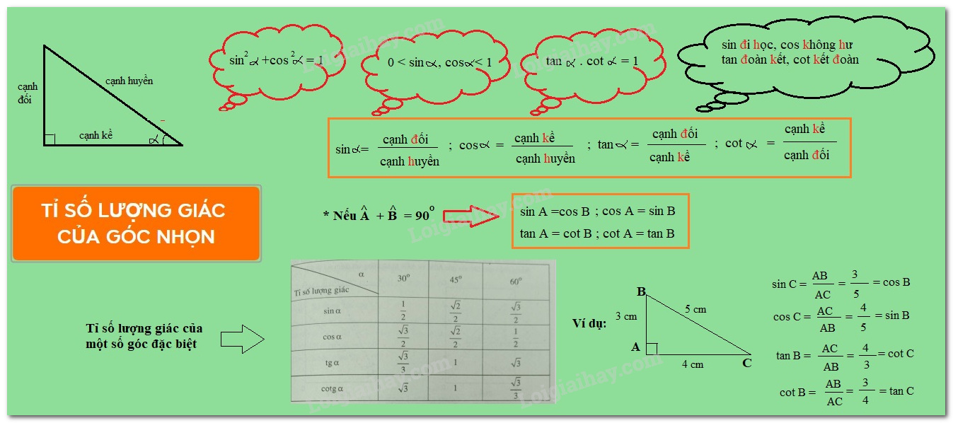 Lý thuyết về tỷ số lượng giác của góc nhọn