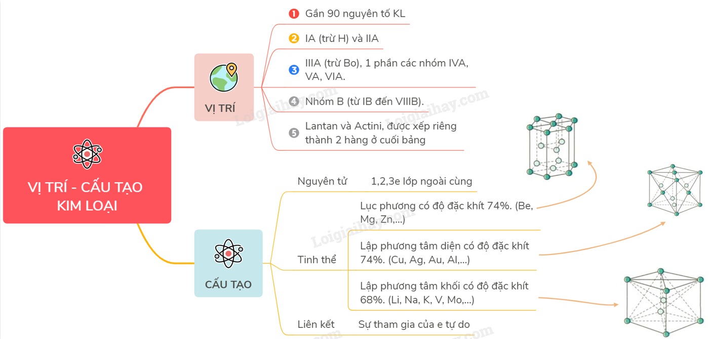 Lý thuyết vị trí của kim loại trong bảng tuần hoàn và cấu tạo của kim loại