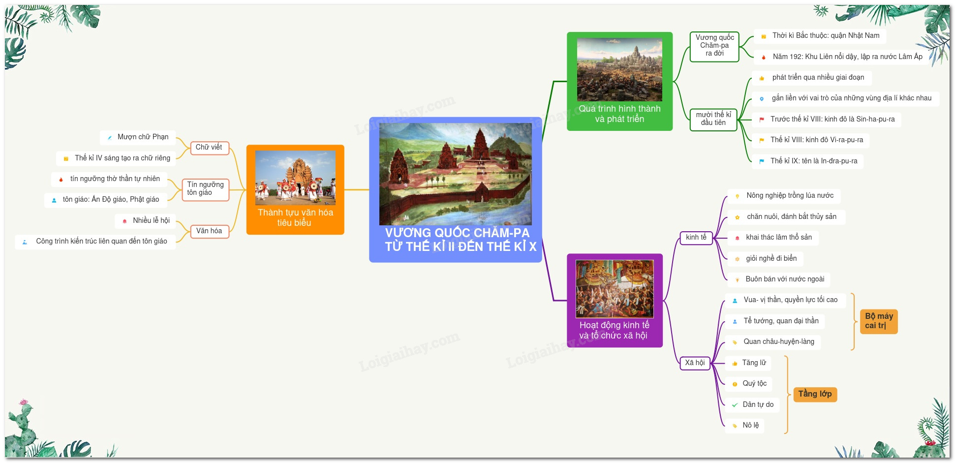 Sơ đồ tư duy vương quốc Chăm-pa từ thế kỉ II đến thế kỉ X