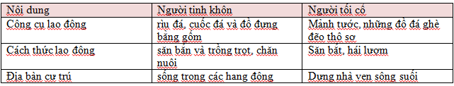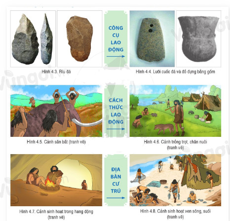 + Cách thức lao động: săn bắt và trồng trọt, chăn nuôi