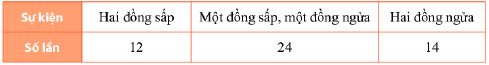 Tung hai đồng xu cân đối 50 lần ta được kết quả như sau: