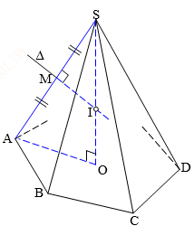 Bán kính \(R = \sqrt {{r^2} + \dfrac{{{h^2}}}{4}} \) với \(r\) là bán kính đường tròn đáy, \(h\) là chiều cao hình chóp.