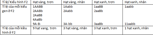 Bảng phân tích kết quả của lai hai cặp tính trạng