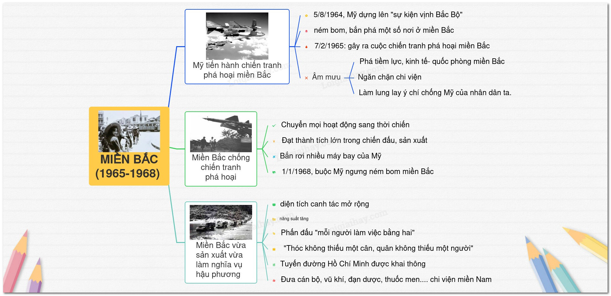 Sơ đồ tư duy Miền Bắc vừa chiến đấu chống chiến tranh phá hoại lần thứ nhất của Mĩ, vừa sản xuất và làm nghĩa vụ hậu phương (1965-1968)