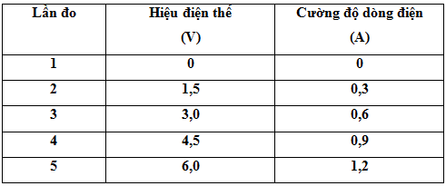 (Mỗi một học sinh làm thí nghiệm sẽ thu được một bảng số liệu khác nhau. Dưới đây là bảng số liệu để các em tham khảo)