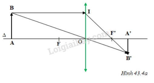 Ta có: \(\Delta {\rm{OIF’}} \sim \Delta A’B’F’ \Rightarrow \displaystyle{{A’B’} \over {OI}} = {{A’F’} \over {OF’}}\) (2)