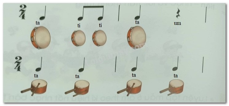 Đọc tiết tấu và luyện tập gõ tem-bơ-rin, trống nhỏ
