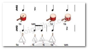 Đọc tiết tấu và luyện tập gõ trống nhỏ, trai-en-gô