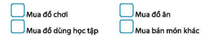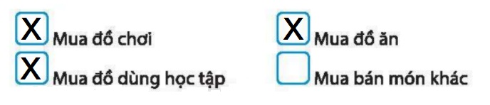 Đánh dấu X vào ô vuông trước các việc em đã sử dụng tiền để mua bán.