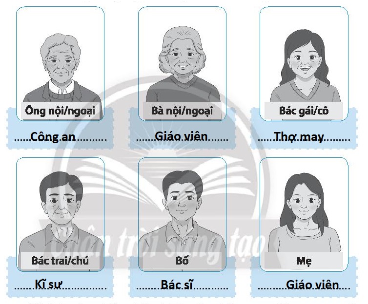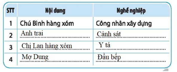 Chú ý: Nếu em không biết những người đó làm nghề gì, em có thể trực tiếp hỏi những người đó, hoặc hỏi bố, mẹ của em.