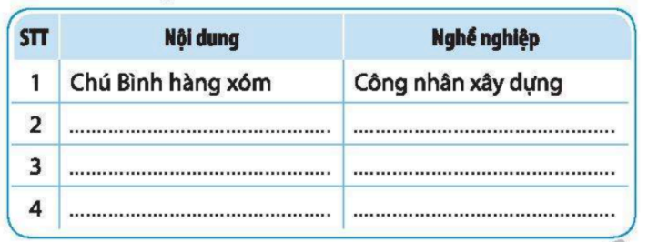 Kể thêm 3 nghề nghiệp khác của những người xung quanh em vào bảng sau: