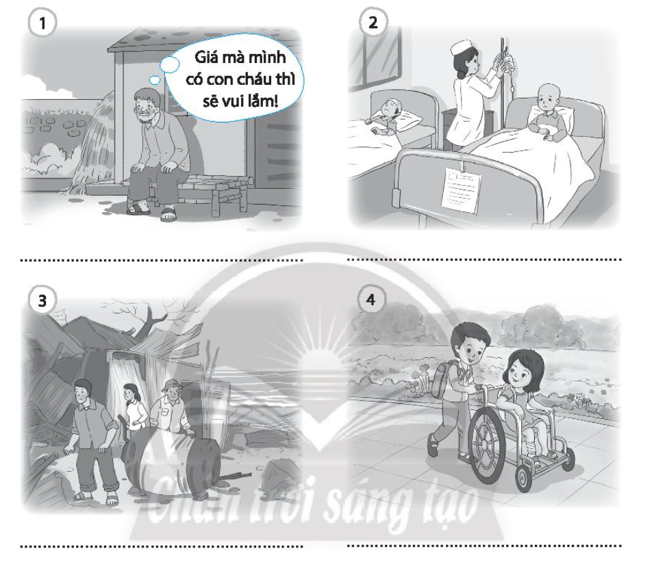 Viết dưới mỗi tranh những khó khăn mà các nhân vật có thể gặp phải.