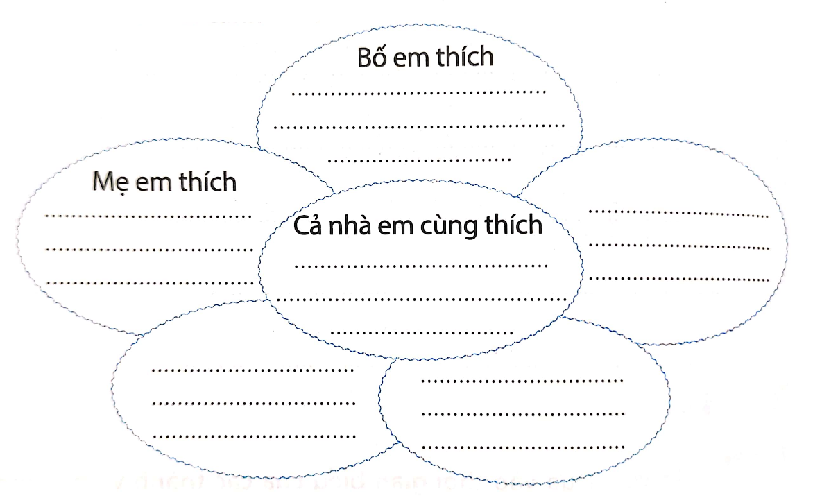 Tìm hiểu về hoạt động yêu thích của các thành viên trong gia đình và viết vào bông hoa theo cách sau: