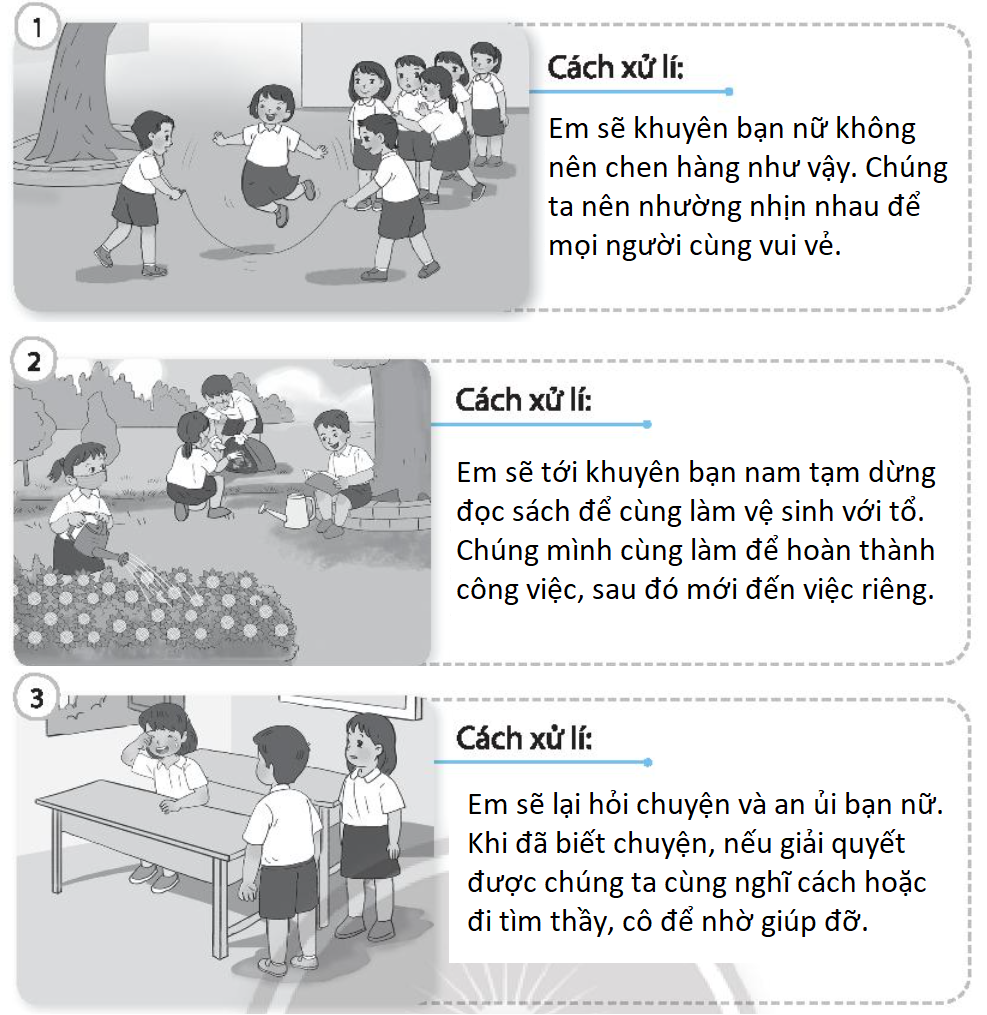 Viết cách giải quyết phù hợp trong các tình huống dưới đây:
