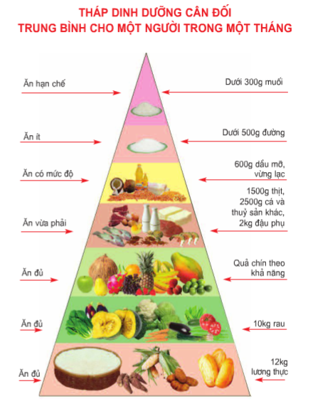 Nhóm thức ăn nào cần ăn đủ, ăn vừa phải hoặc ăn có mức độ?