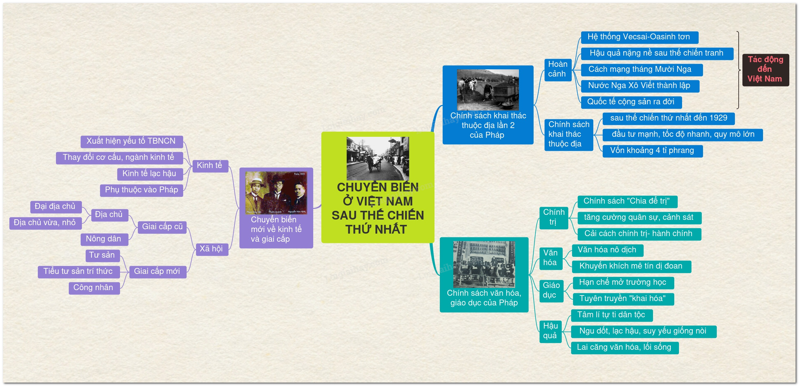 Sơ đồ tư duy những chuyển biến mới về kinh tế, chính trị, văn hóa, xã hội ở Việt Nam sau Chiến tranh thế giới thứ nhất